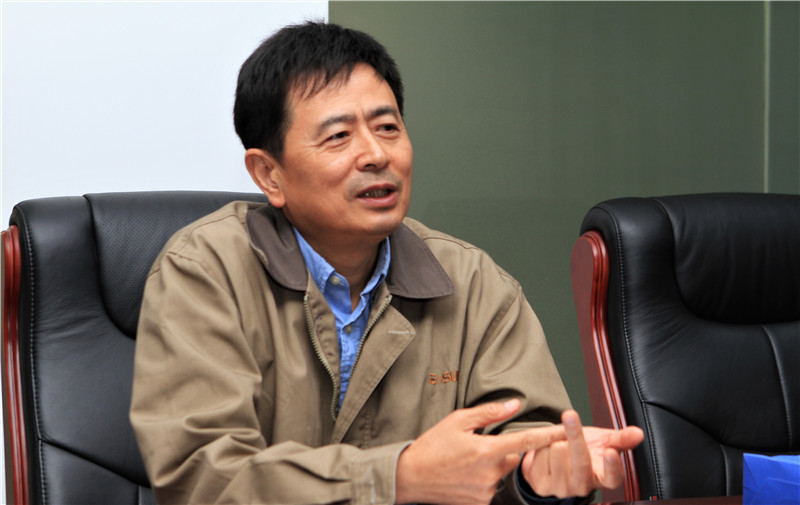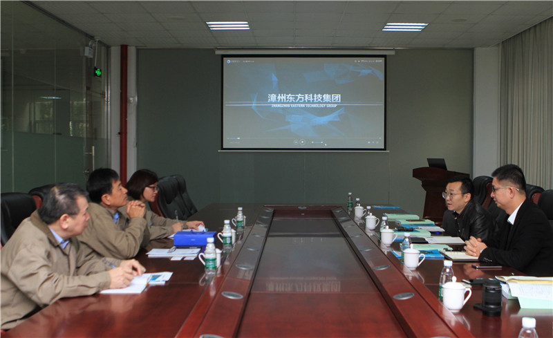 图为东方智能仪表公司董事长黄志刚与工作组交流
