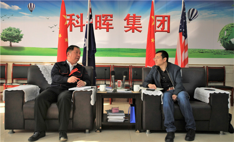 图为(左一)科晖专用汽车总经理杨志强介绍企业发展情况