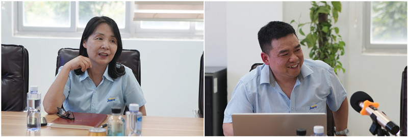 林君如副总介绍企业市场优势(左) 郑序漳副总介绍企业技术成果(右)