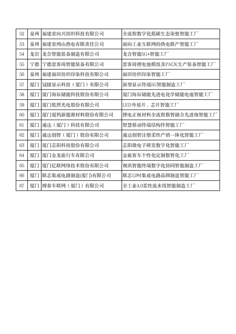 为深入推进智能制造发展,经研究,确定厦门天马显示科技有限公司第6代柔性AMOLED智能工厂等67个项目为2025年先进级智能工厂项目(具体名单见附件),现予以公布。